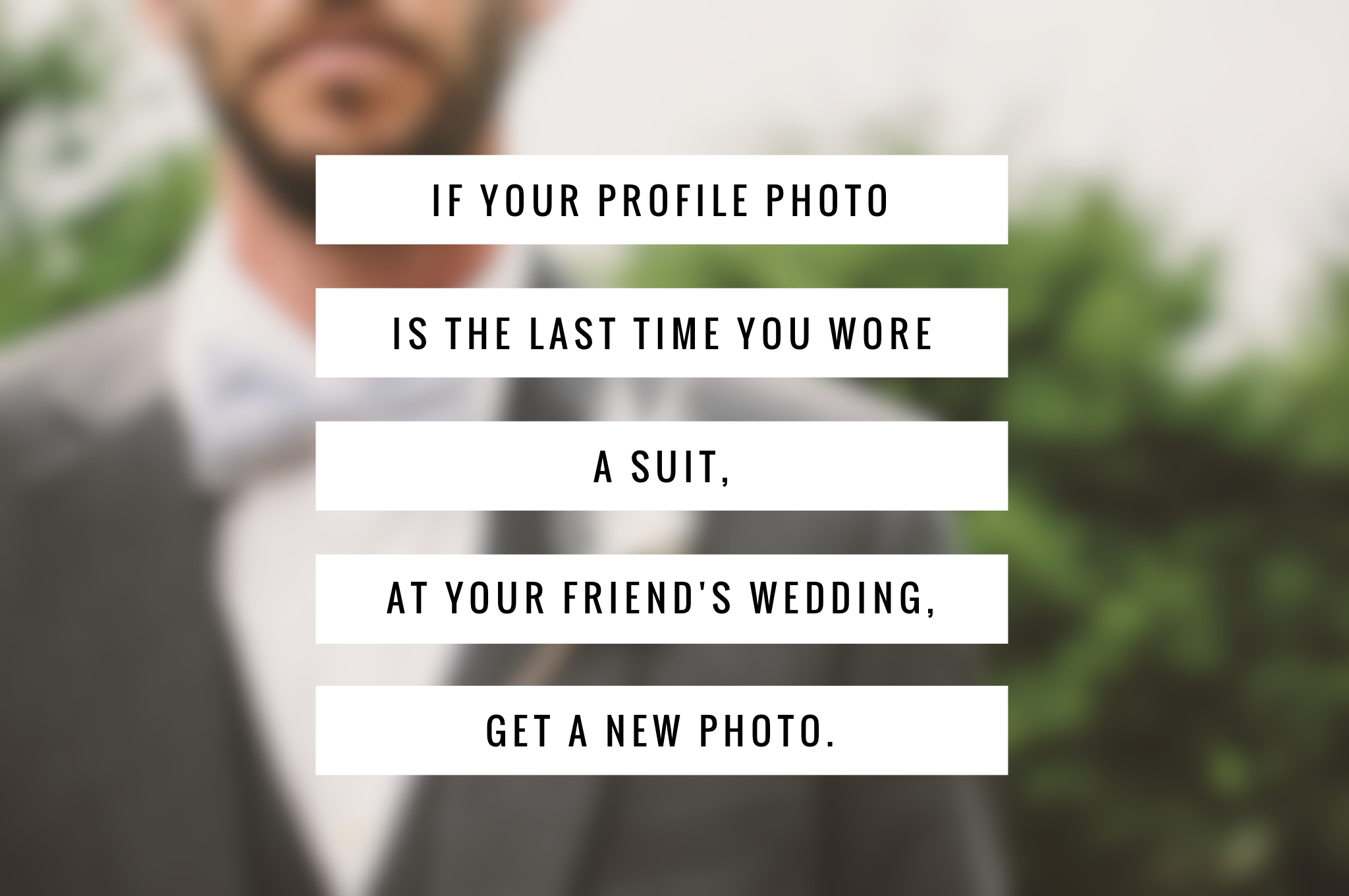 If your profile photo is the last time you wore a suit, at your friend’s wedding, get a new photo. A selfie or won’t do either.